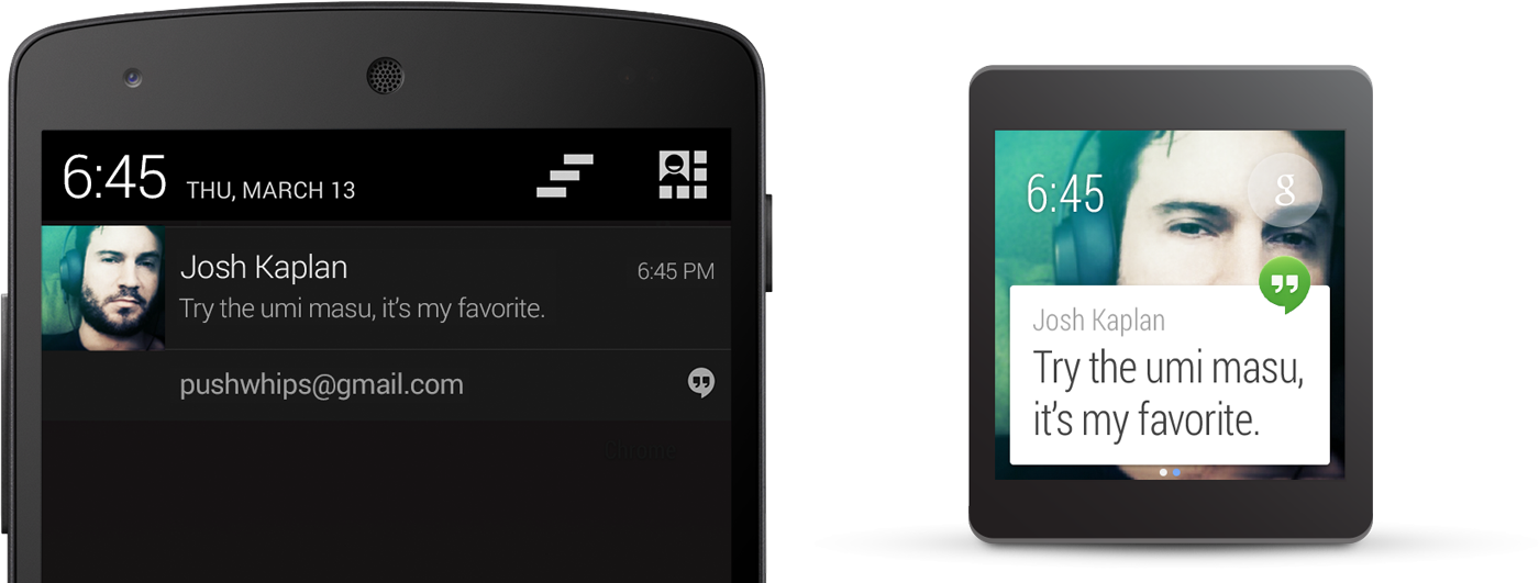 Figure 1. 同时展示在手持设备和可穿戴设备的Notification