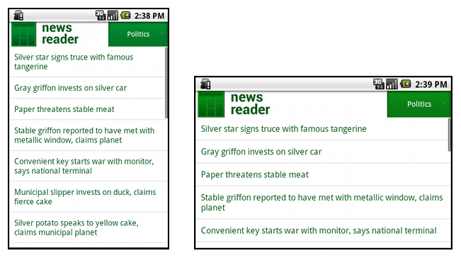 图1:News Reader示例app(左边竖屏,右边横屏)。