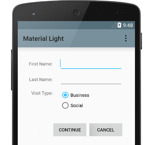 Note: Material 主题只支持 Android 5.0 (API level 21) 及以上版本。v7 Support 库提供了一些组件的 Material Deisgn 样式,也支持自定义调色板。更多信息,请参见维护兼容性章节。