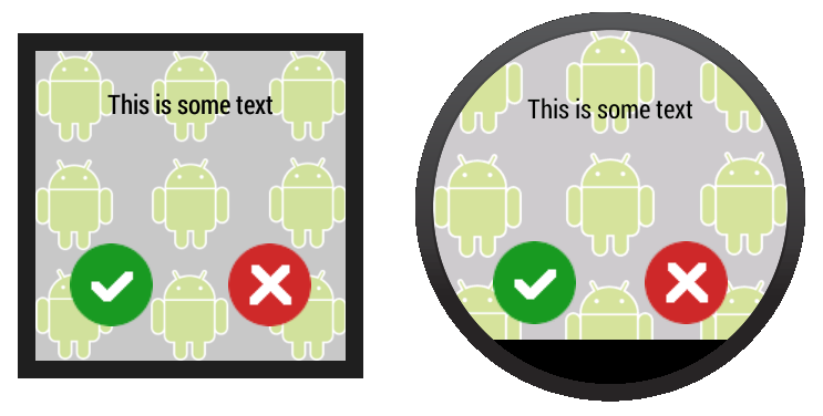 举个例子,figure 1展示了下面的layout在圆形和方形屏幕上的效果: