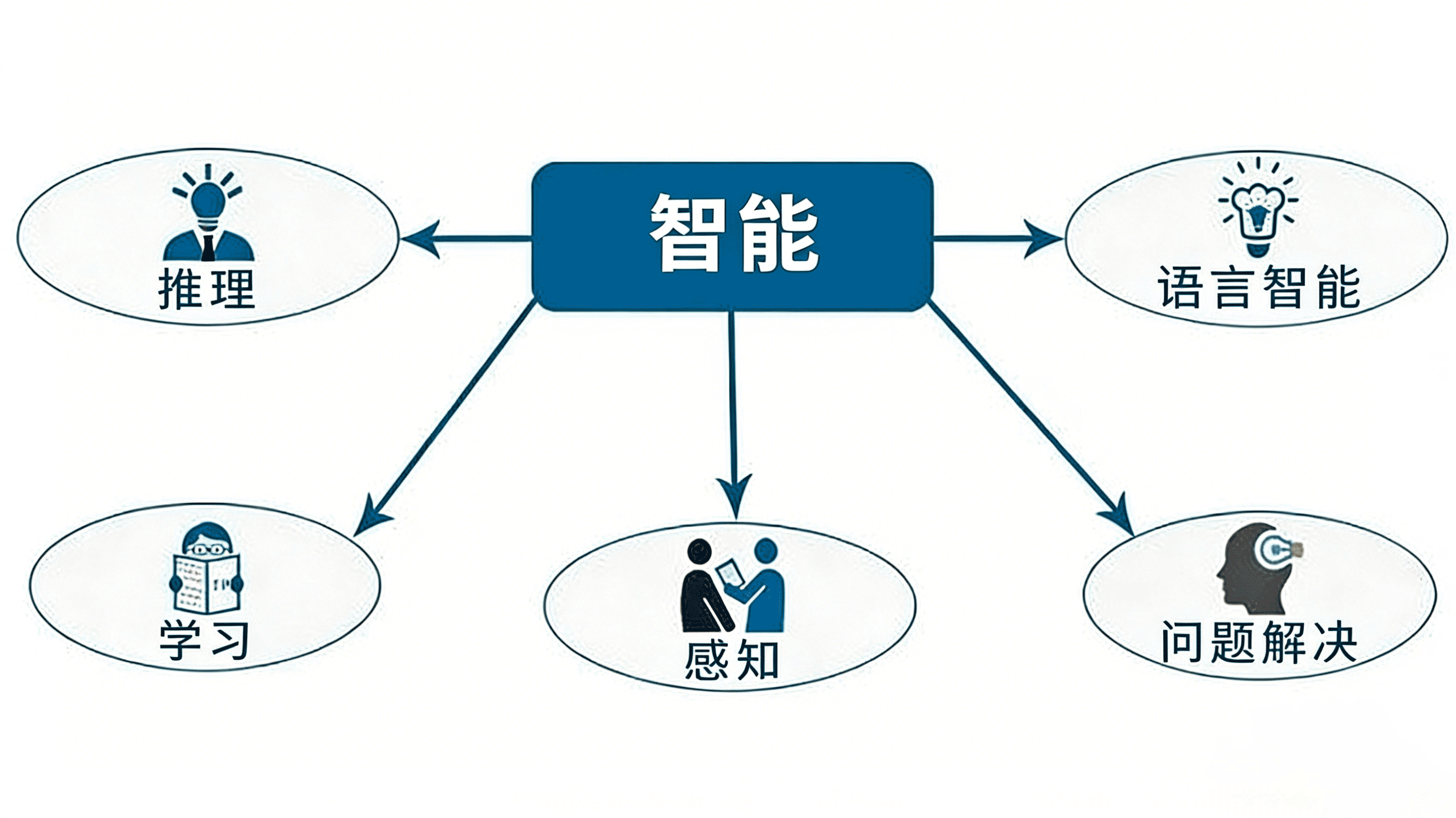 智能是无形的,主要由以下部分组成:推理、学习、问题解决、感知、语言智能。