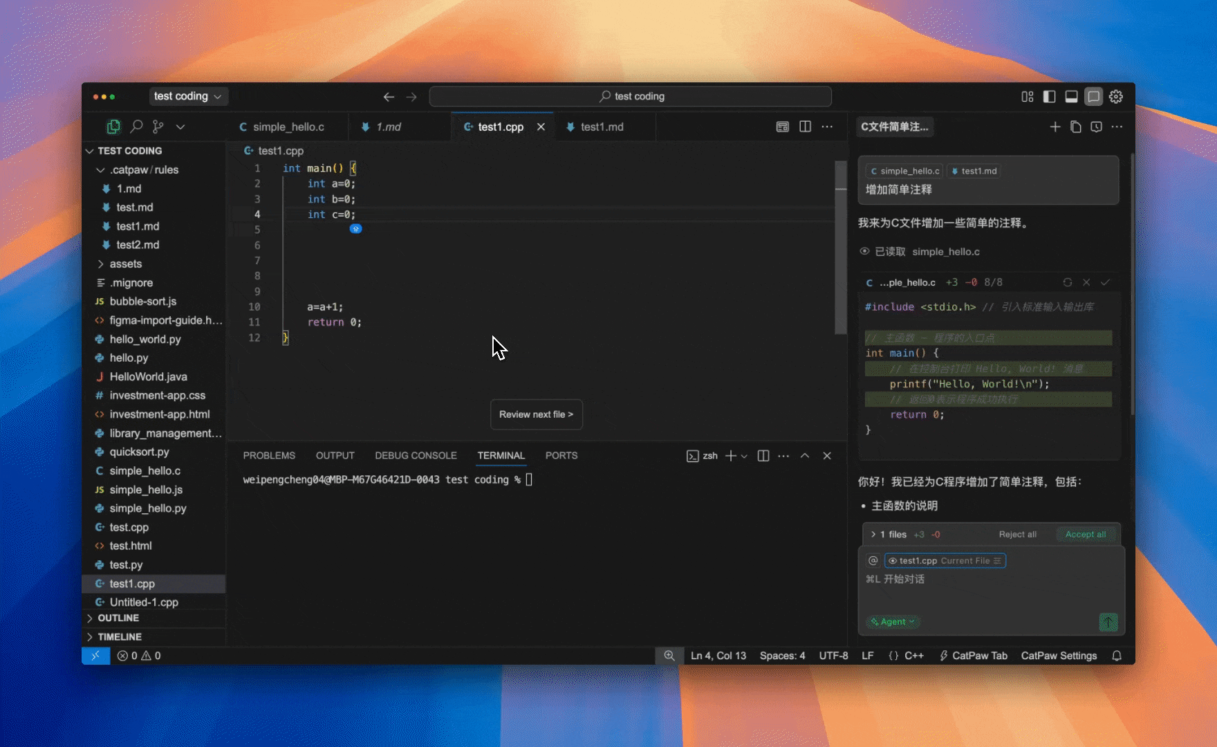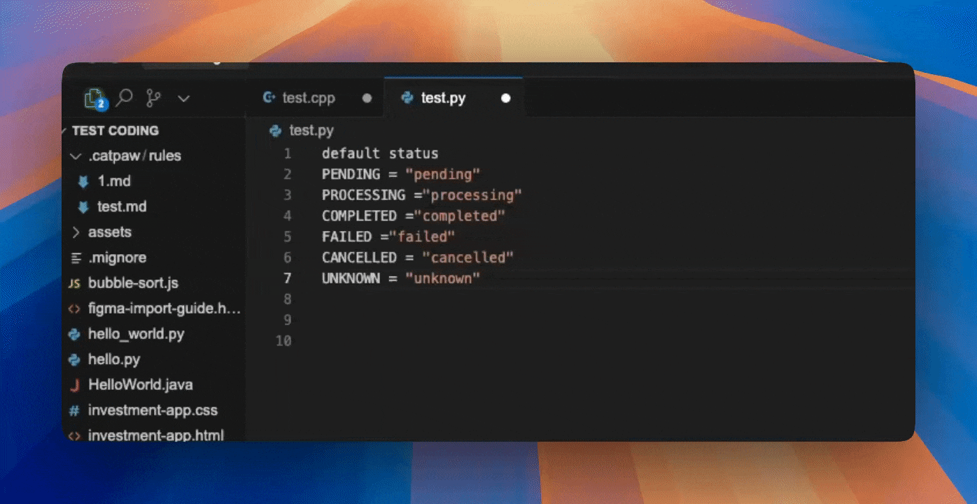 目前,Meituan CatPaw 的代码补全功能已支持 所有主流编程语言 ,包括但不限于 Java、Python、C++ 等。