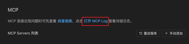 建议优先查看控制台中的 MCP Log ,确认报错信息。