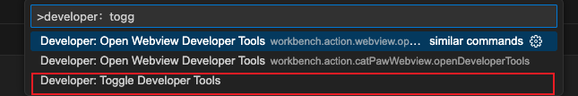 您可以在最上方搜索栏中找到 Developer: Toggle Developer Tools 选项来查看日志信息。
