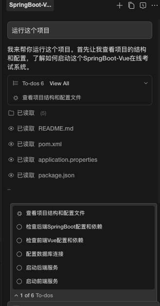 7. To-do List: 智能任务管理功能,针对复杂的编程任务,AI 会自动生成结构化的待办清单,并在执行过程中实时展示各项任务的完成进度,让您的工作更有条理。
