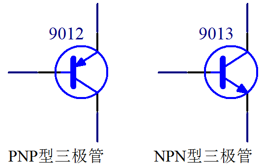 三极管是一种很常用的控制和驱动器件,常用的三极管根据材料分有硅管和锗管两种,原理相同,压降略有不同,硅管用的较普遍,而锗管应用较少,本课程就用硅管的参数来进行讲解。三极管有2种类型,分别是 PNP 型和 NPN 型。先来认识一下,如图3-6。