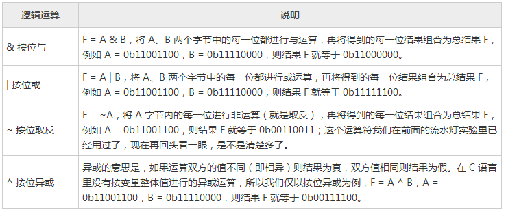 以下逻辑运算符都是按照变量内的每一个位来进行运算的,通常就叫做位运算符: