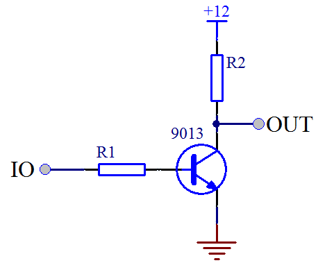 图3-8 中,当 IO 口输出高电平 5 V 时,三极管导通,OUT 输出低电平 0 V,当 IO 口输出低电平时,三极管截止,OUT 则由于上拉电阻 R2 的作用而输出 12 V 的高电平,这样就实现了低电压控制高电压的工作原理。