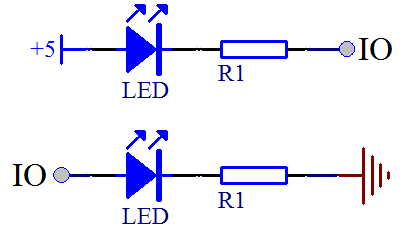 图3-9中上边的 LED 灯,和我们第二课讲过的 LED 灯是一样的,当 IO 口是高电平时,小灯熄灭,当 IO 口是低电平时,小灯点亮。那么下边的电路呢,按照这种推理,IO 口是高电平的时候,应该有电流流过并且点亮小灯,但实际上却并非这么简单。