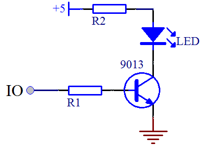 图3-10中,当 IO 口是高电平,三极管导通,因为三极管的电流放大作用,c 极电流就可以达到 mA 以上了,就可以成功点亮 LED 小灯。