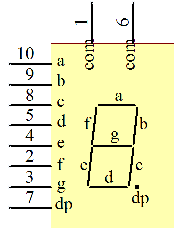 这是比较常见的数码管的原理图,我们板子上一共有6个数码管。前边有了 LED 小灯的学习,数码管学习就会轻松的多了。从图5-3可以看出来,数码管共有 a、b、c、d、e、f、g、dp 这么8个段,而实际上,这8个段每一段都是一个 LED 小灯,所以一个数码管就是由8个 LED 小灯组成的。我们看一下数码管内部结构的示意图,如图5-4。
