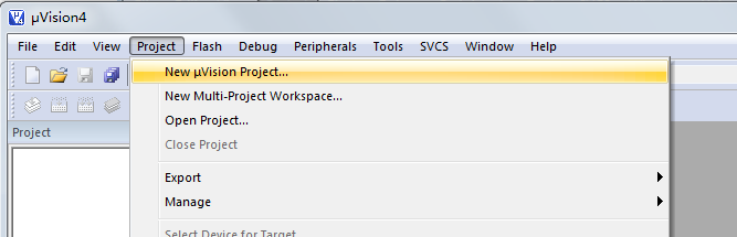 对于单片机程序来说,每个功能程序,都必须要有一个配套的工程(Project),即使是点亮 LED 这样简单的功能程序也不例外,因此我们首先要新建一个工程,打开我们的 Keil 软件后,点击:Project-->New uVision Project...然后会出现一个新建工程的界面,如图2-8所示。