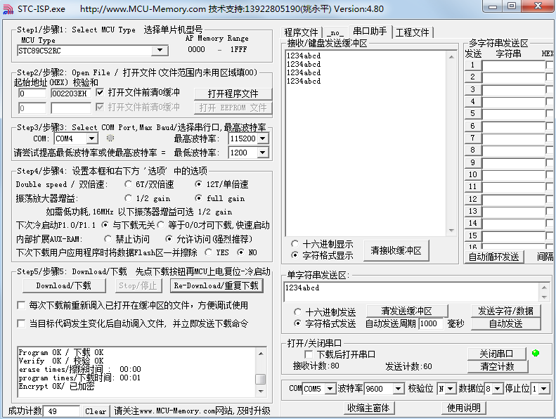 学习了第13章实用的串口通信方法和程序后,做这种串口通信的方法就很简单了,基本是一致的。我们使用实用串口通信例程的思路,做了一个简单的程序,通过串口调试助手下发任意个字符,单片机接收到后在末尾添加“回车+换行”符后再送回,在调试助手上重新显示出来,先把程序贴出来。