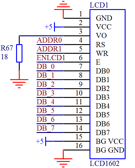 液晶的电源1脚2脚以及背光电源15脚16脚,不用多说,正常接就可以了。