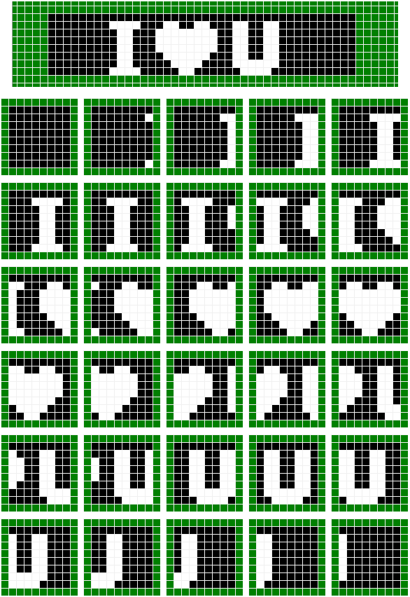 图7-11中最上面的图形是横向连在一起的效果,而实际上我们要把它分解为30个帧,每帧图片单独取模,取出来都是8个字节的数据,一共就是30*8个数据,我们用一个二维数组来存储它们。