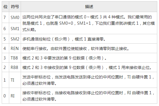 | 符号 | SM0 | SM1 | SM2 | REN | TB8 | RB8 | TI | RI |