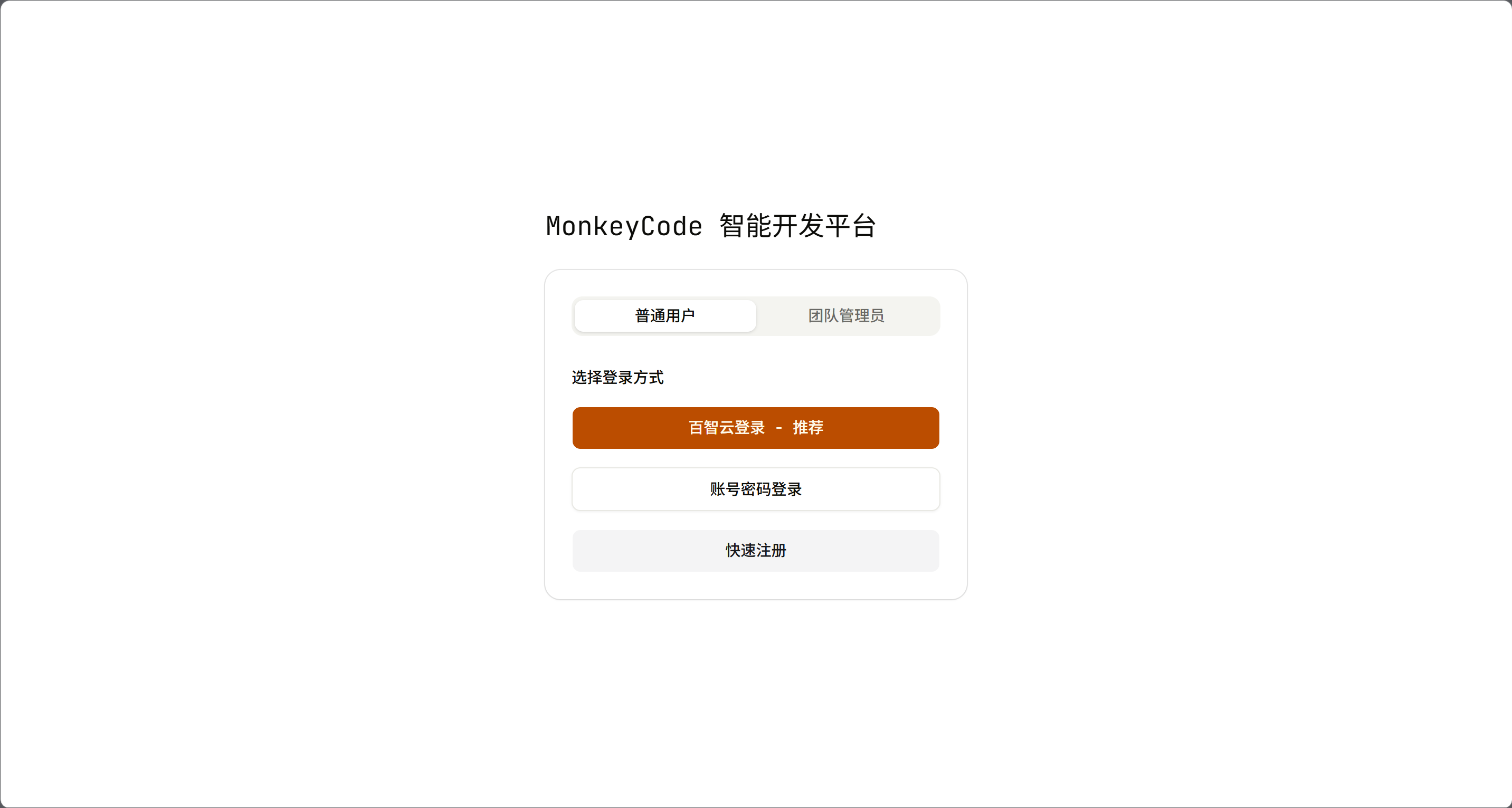 已有账号访问:登录时默认选择「普通用户」身份完成验证,确保账号权限匹配。也可直接注册百智云账号登录(推荐)。