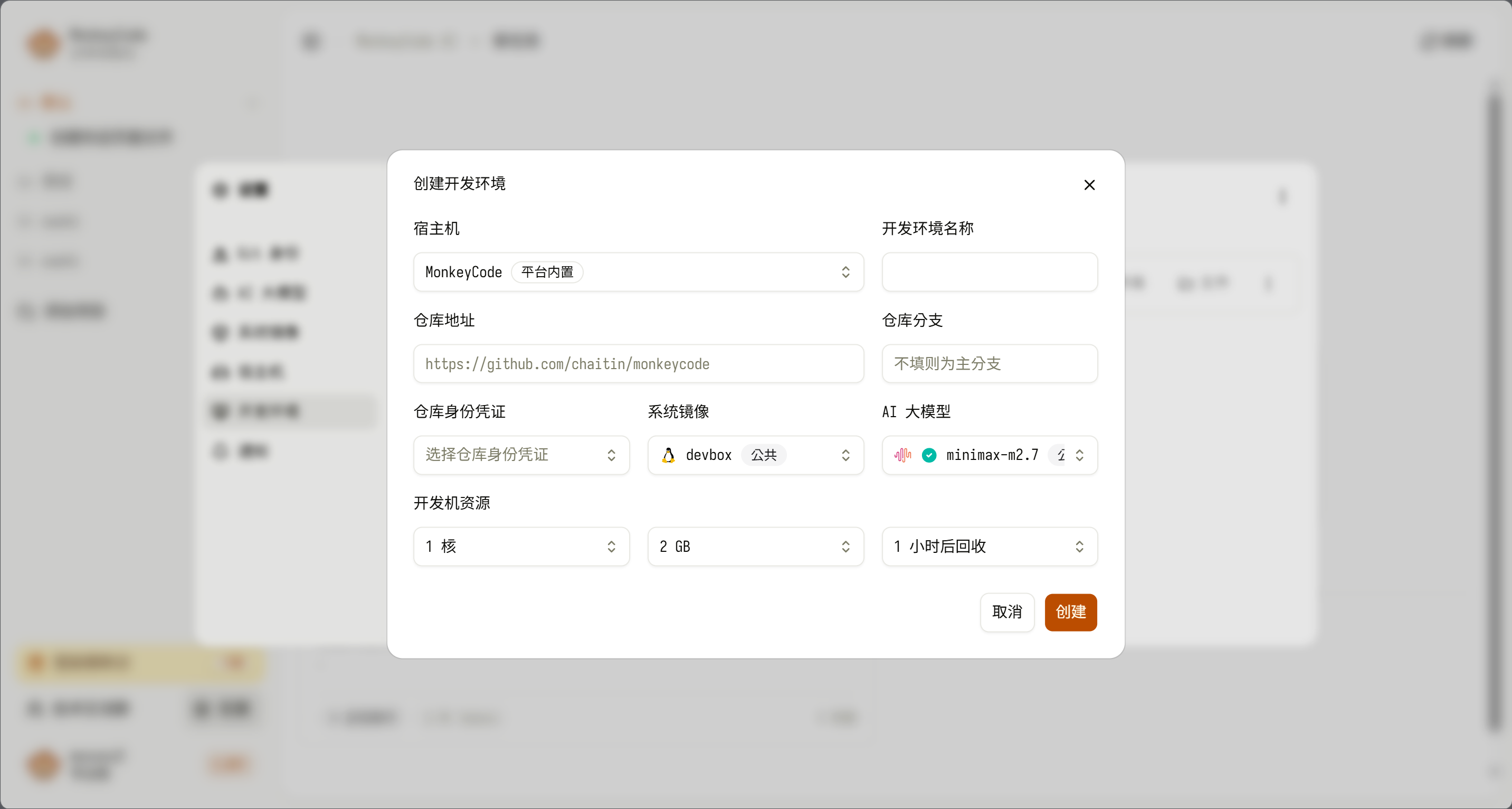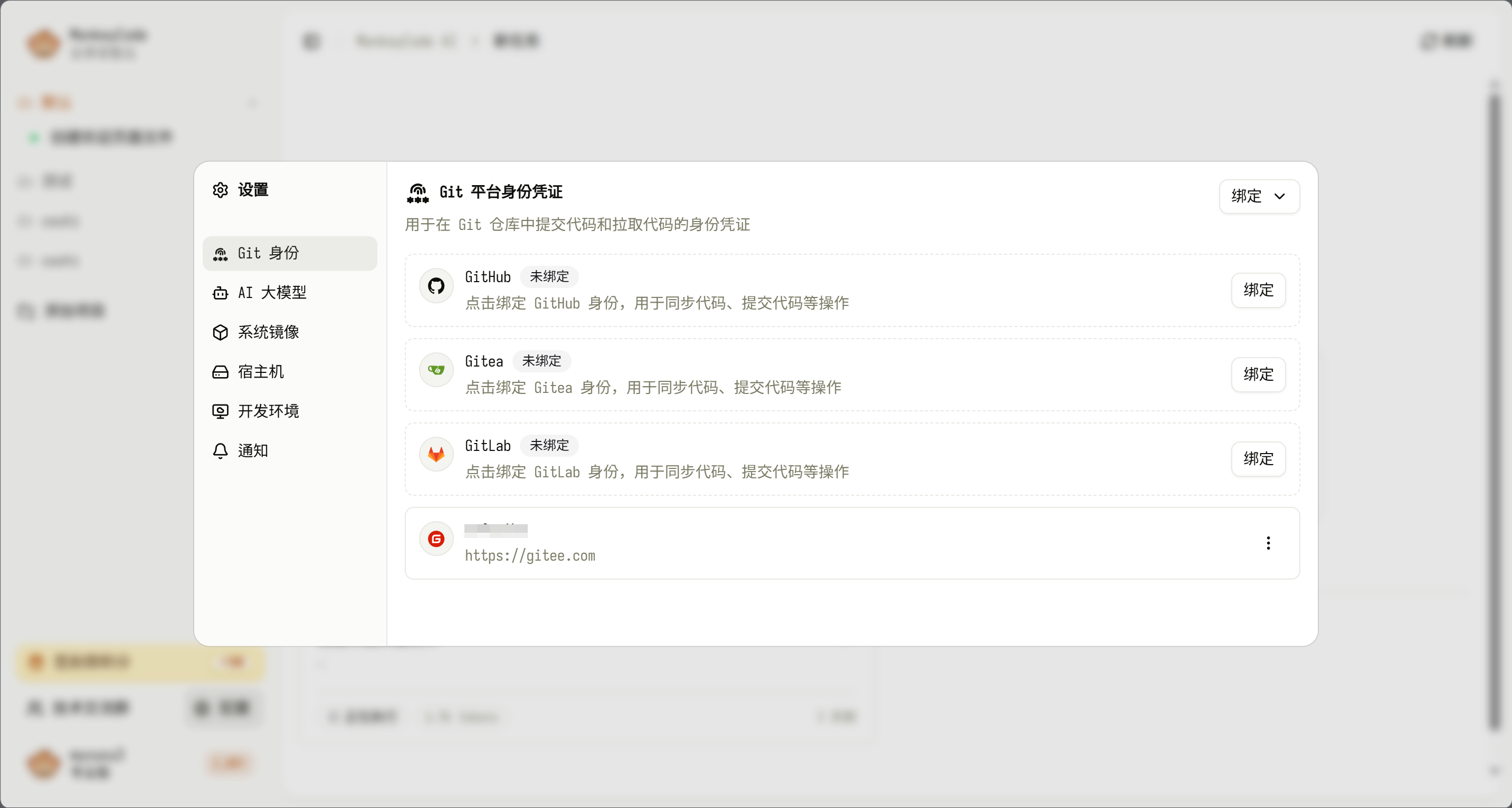 需先在对应 Git 平台完成代码仓库的创建,再在 MonkeyCode 中选择目标平台完成凭证绑定,确保仓库地址与权限配置准确,为后续代码操作提供基础支撑。