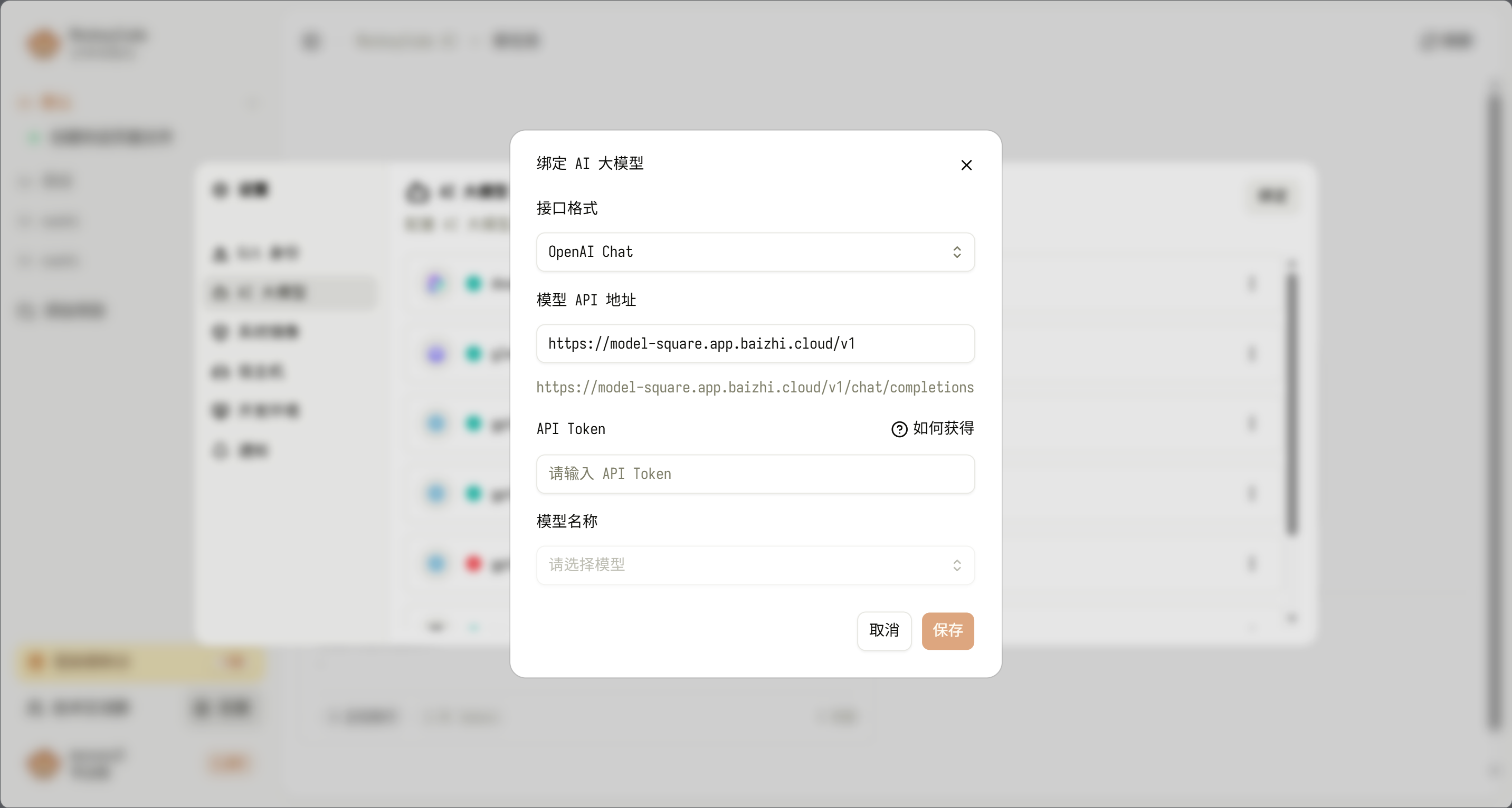 自定义绑定:若需使用其他大模型,可在对应配置模块填写模型 API Token 完成绑定,支持主流大模型的接入适配。