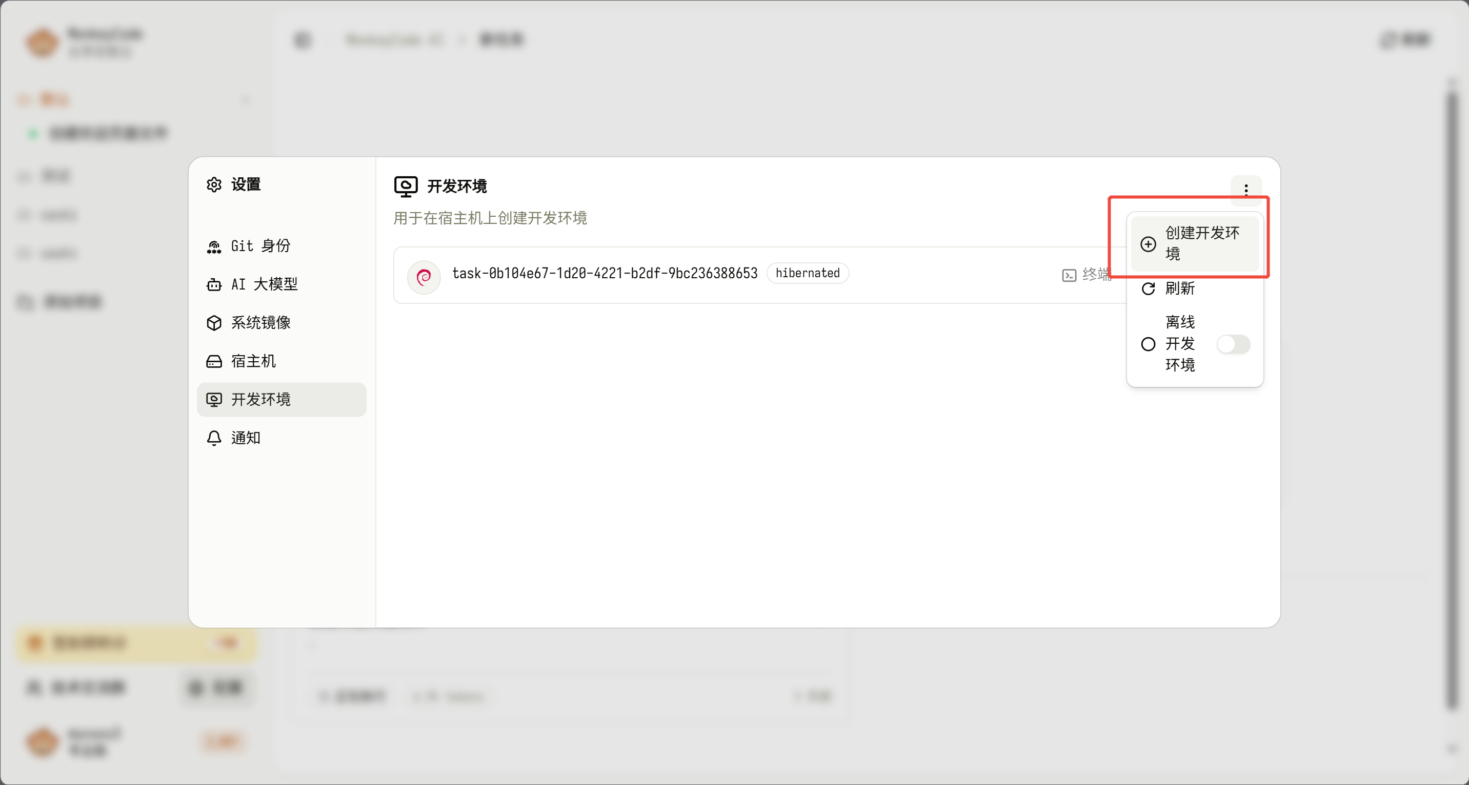 针对有特定运行环境需求的项目,可通过该模块配置独立的开发环境,适配不同技术栈、系统版本的项目诉求: