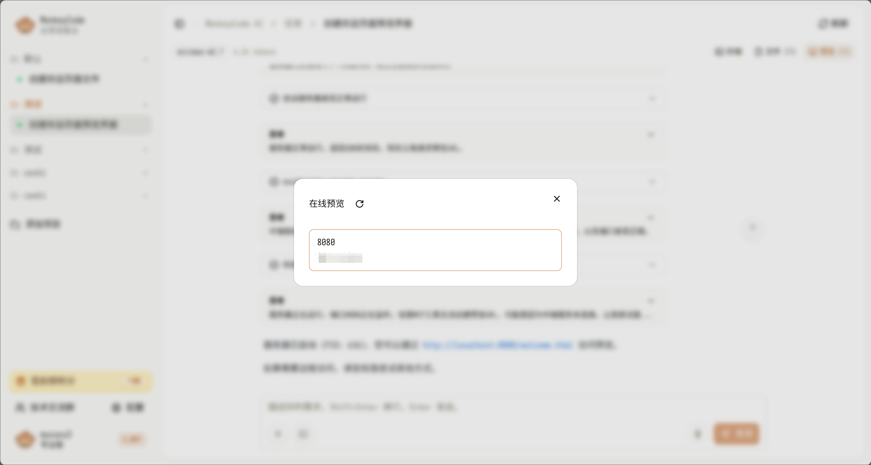 在线预览:除文件内容预览外,平台支持项目在线运行预览,点击「预览」按钮即可通过开发端口查看项目运行效果。
