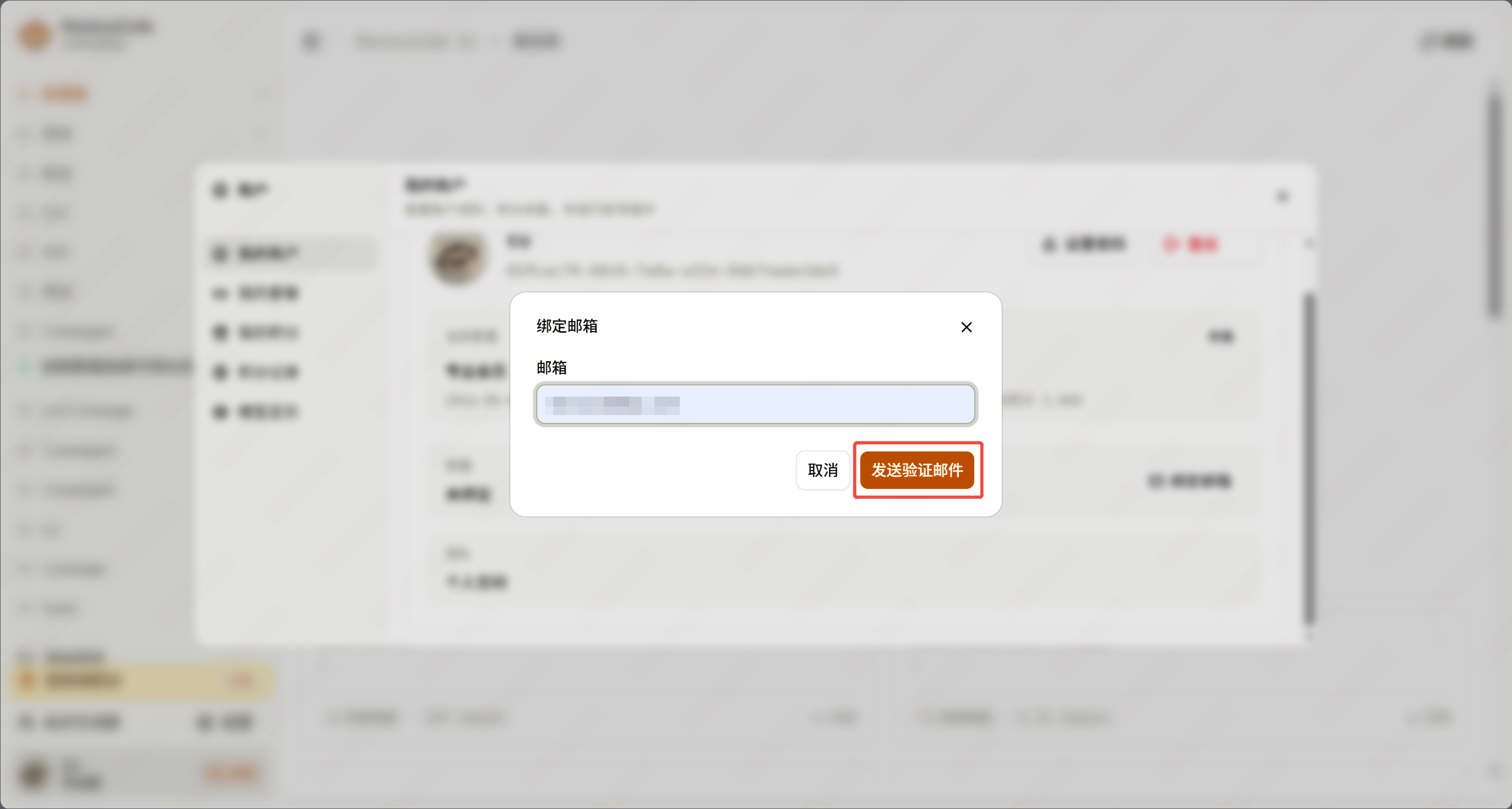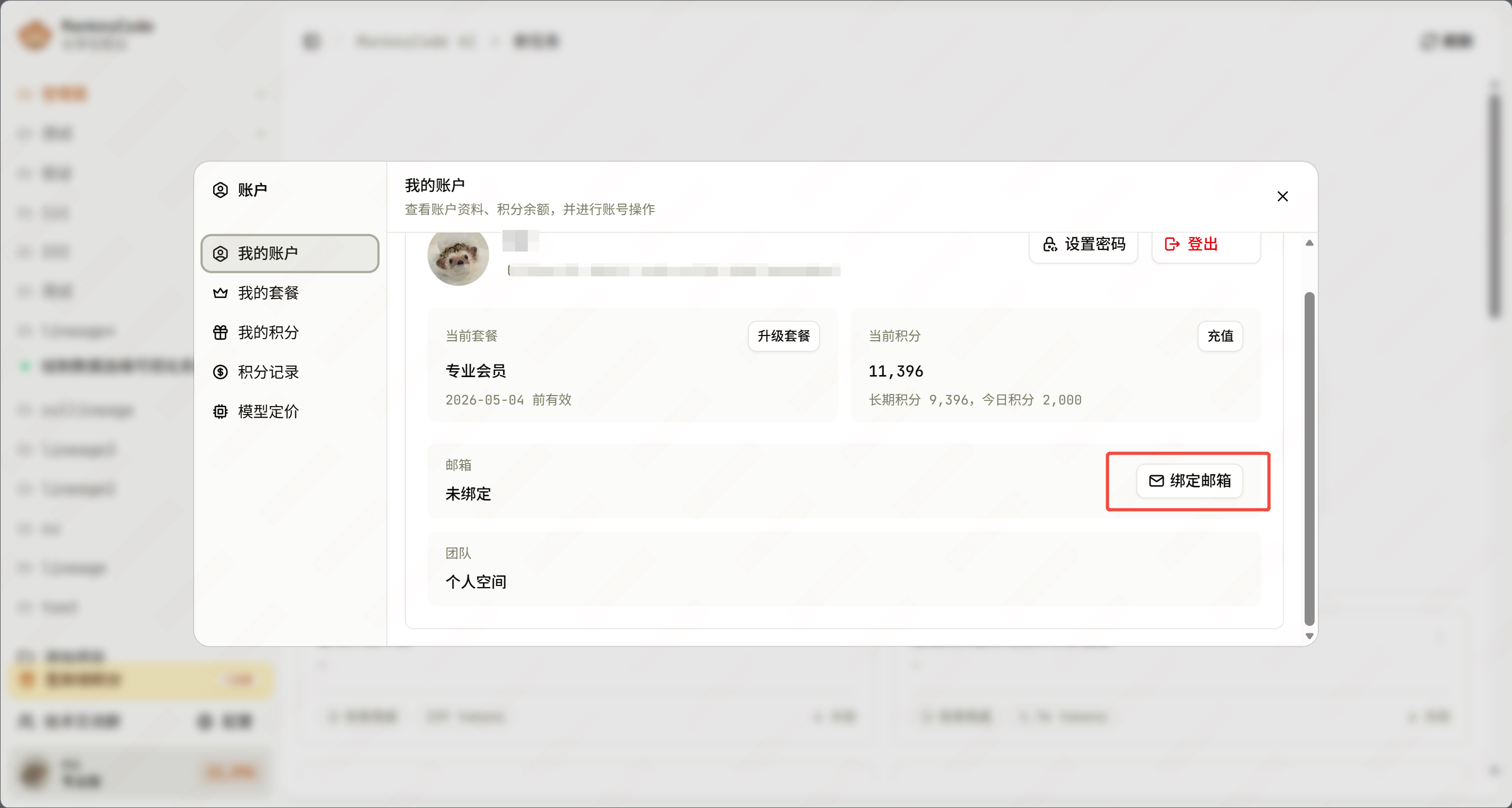 在扫码登录后,点击左下角个人信息部分,可以进行邮箱绑定。
