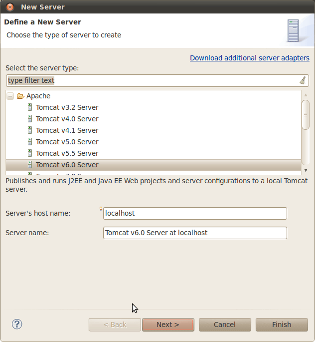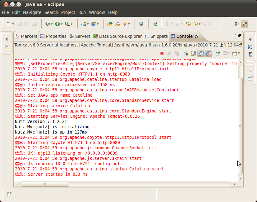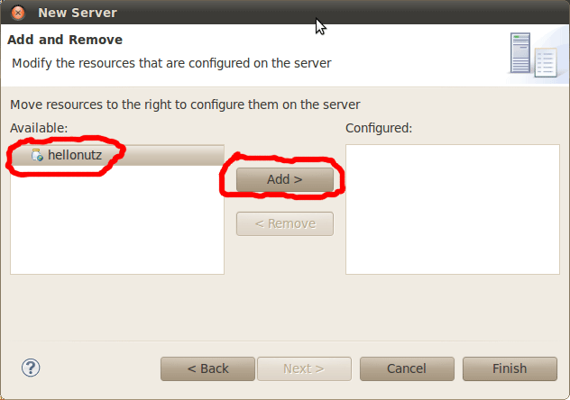 如果你已经在 Eclipse 中创建了一个 Tomcat 服务器,请 跳过本步骤,直接将项目 hellonutz 添加到这个服务器中即可