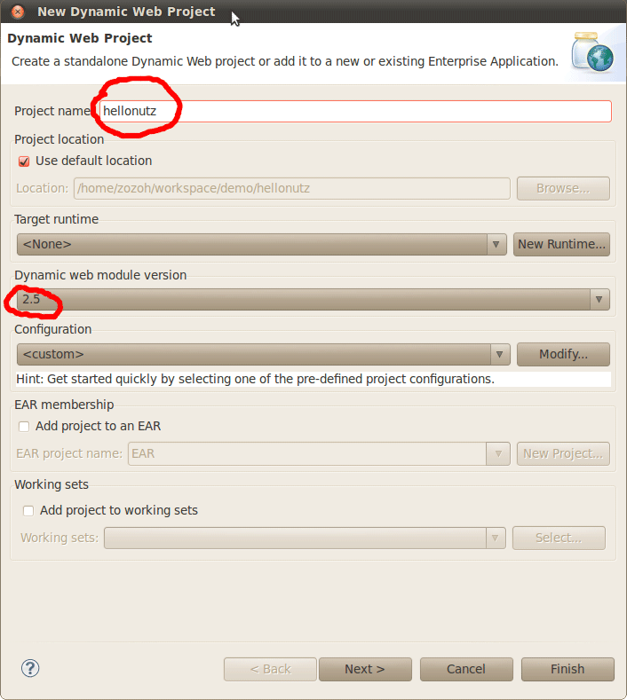 - 这个例子使用的是 Tomcat 6.0,所以请将 Dynamic Web module version 设置成 2.5
