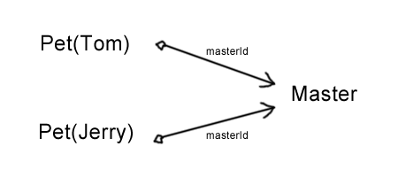 如上图,一个 Master 自然就能对应多个 Pet ,所以, Master.pets (一个 List<Pet>) 就可以指向多个 Pet 对象, 那么我们说 Master.pets 就是 Master 对 Pet 的一对多映射。