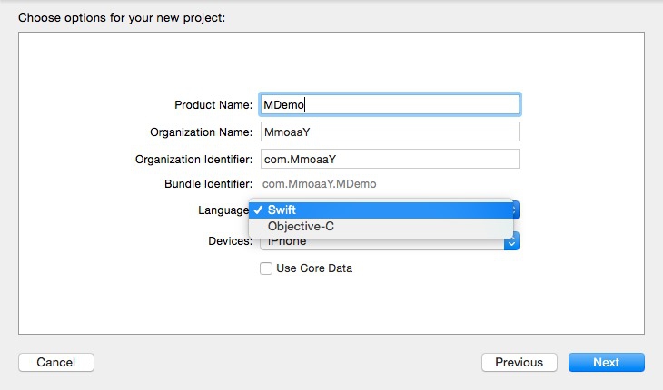 创建工程,Language 选择 swift 或 Objective-C 都可以。