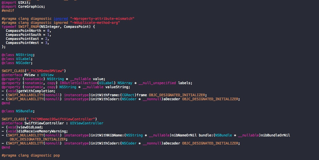 查看 XXX-Swift.h 文件中的代码: