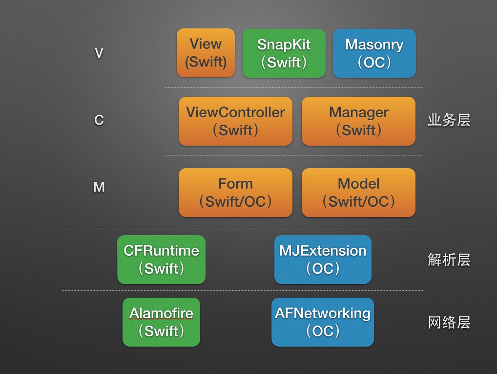 - 项目中原来已经用 OC 实现的模块如果使用 Swift 重写,代价稍大