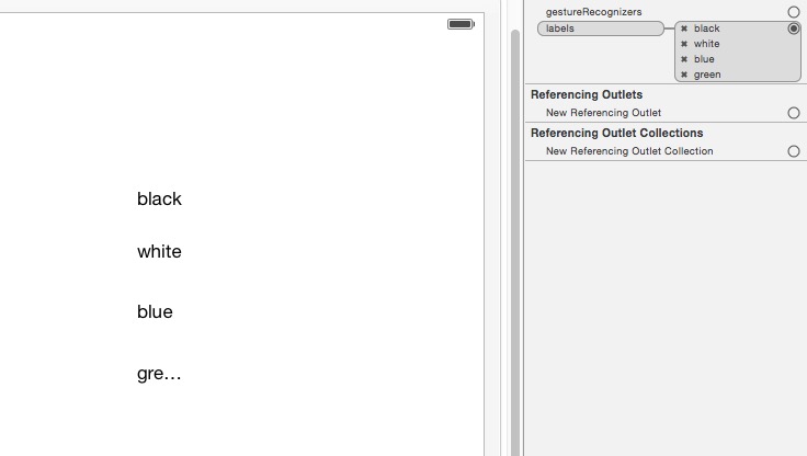 需要注意的是:和 OC 的 IBOutletCollection 不同,labels 中的元素不一定是按照 black,white,blue,green 的顺序排列!