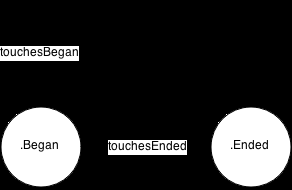当手势识别器的状态改变时它的 target-action 就会被触发。当手指触碰到屏幕时, touchesBegan(_:withEvent) 触发。手势识别器将其状态置为 .Began ,然后自动调用 target-action。当手指离开屏幕时, touchesEnded(_:withEvent) 将其状态置为 .Ended,然后再次调用 target-action 。