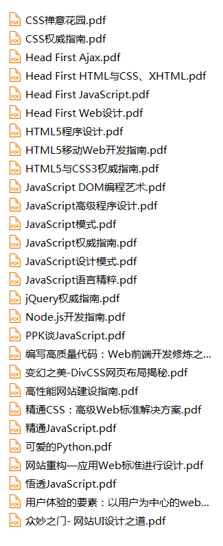 (有些童鞋认为:从来不需要买纸质书,我全程PDF就行了嘛,不过我建议有些书还是要纸质的,这样有感觉,也可以做笔记,甚至随时当工具书字典来查询,由于前端的特殊性和js语言的属性之繁多庞杂,我建议你还是要买纸质的书。帮助很大,而且我告诉你有了钱要补上正版呃)