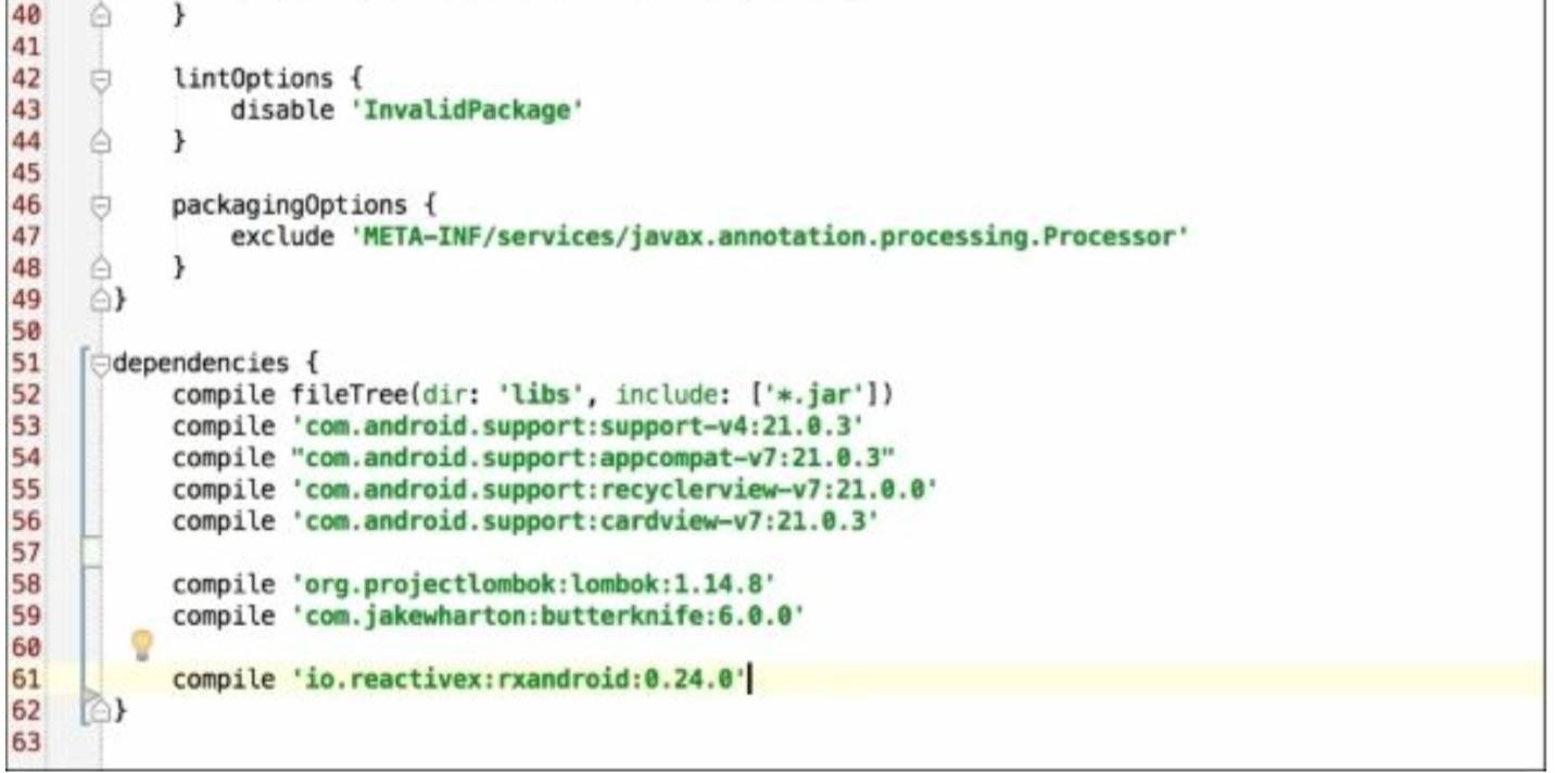 正如你看到的我们引入了RxAndroid。RxAndroid是RxJava的增强版,尤其是针对Android设计的。