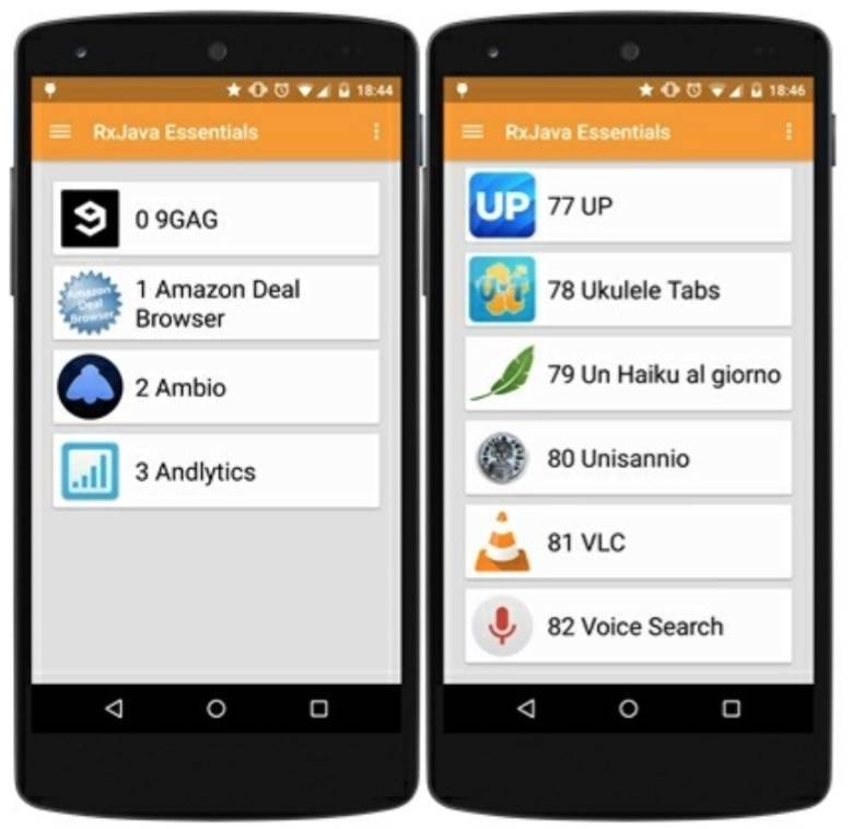 对于“真实世界”的例子来说,我们将使用已安装的应用列表和一个新的动态的Observable来让例子变得有点有趣味。