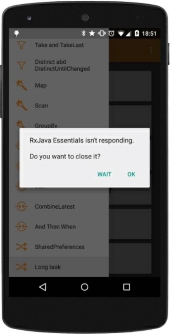 我们已经知道如何处理缓慢的I/O操作。让我们看一个与I/O无关的耗时的任务。例如,我们修改loadList()函数并创建一个新的slow函数发射我们已安装的app数据。
