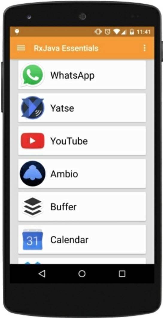 这一点,我们已经创建了几个发射AppInfo数据的Observable,用来填充我们的列表。我们想保留字母排序和分组排序。我们将创建一个新的Observable将所有的联系起来,像往常一样然后订阅它: