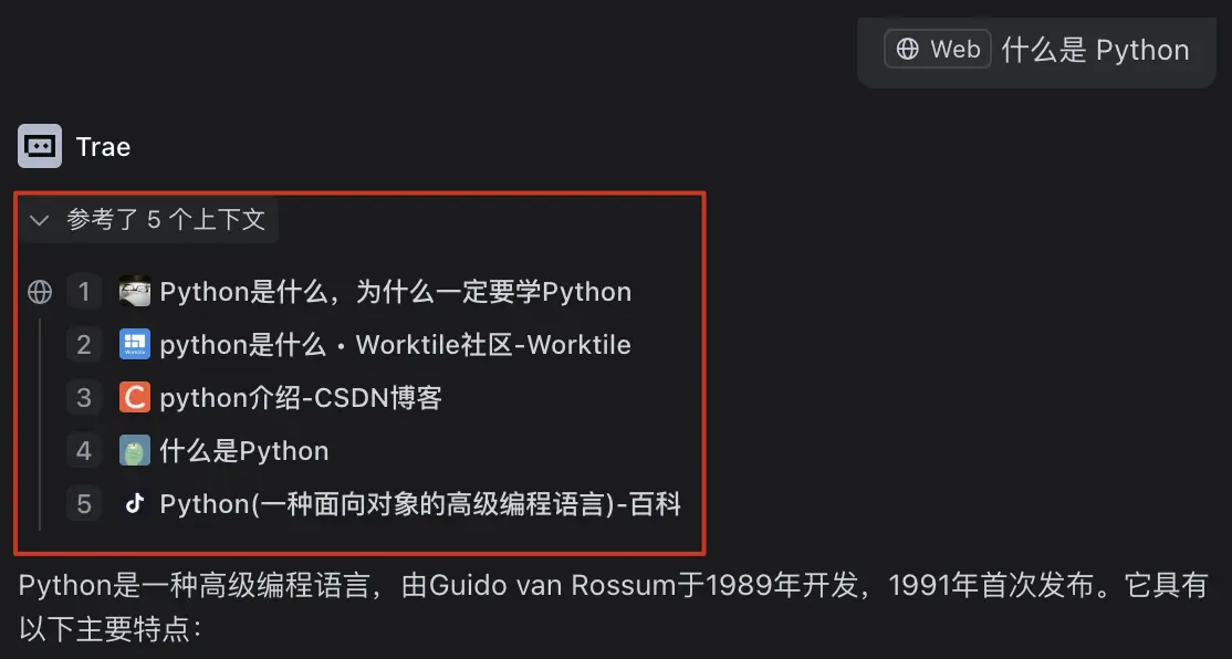 #Web后输入你的问题并发送。这种方式会触发联网搜索,AI 会在全网搜索与提问相关的内容并生成答复。