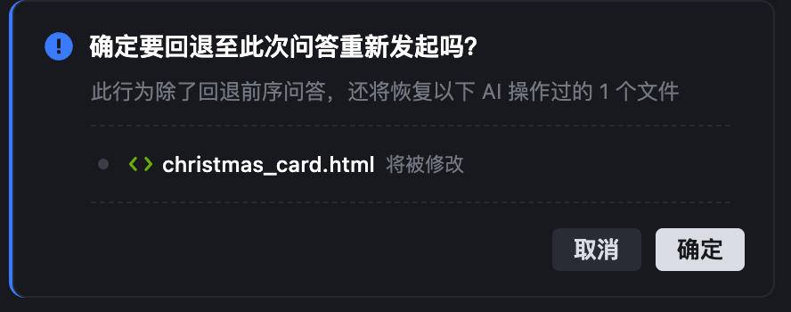 你可以将项目回退至指定会话轮次发起前的版本。