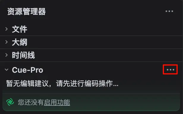 a. 在左侧 资源管理器 中,点击 Cue-Pro 视图右上角的 ··· 按钮。 b. 在面板中打开/关闭 Cue-Pro。