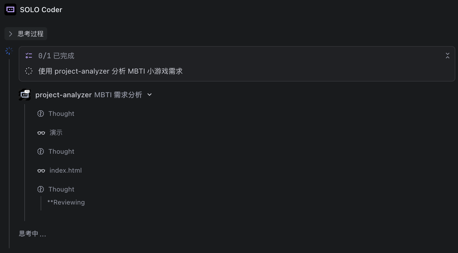 开启该模式后,当 SOLO Coder 收到需求时,会分析需求并规划任务,待用户确认后将一一执行。