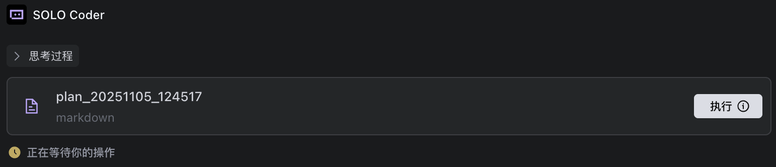 开始执行任务后,SOLO Coder 会退出 Plan 模式。
