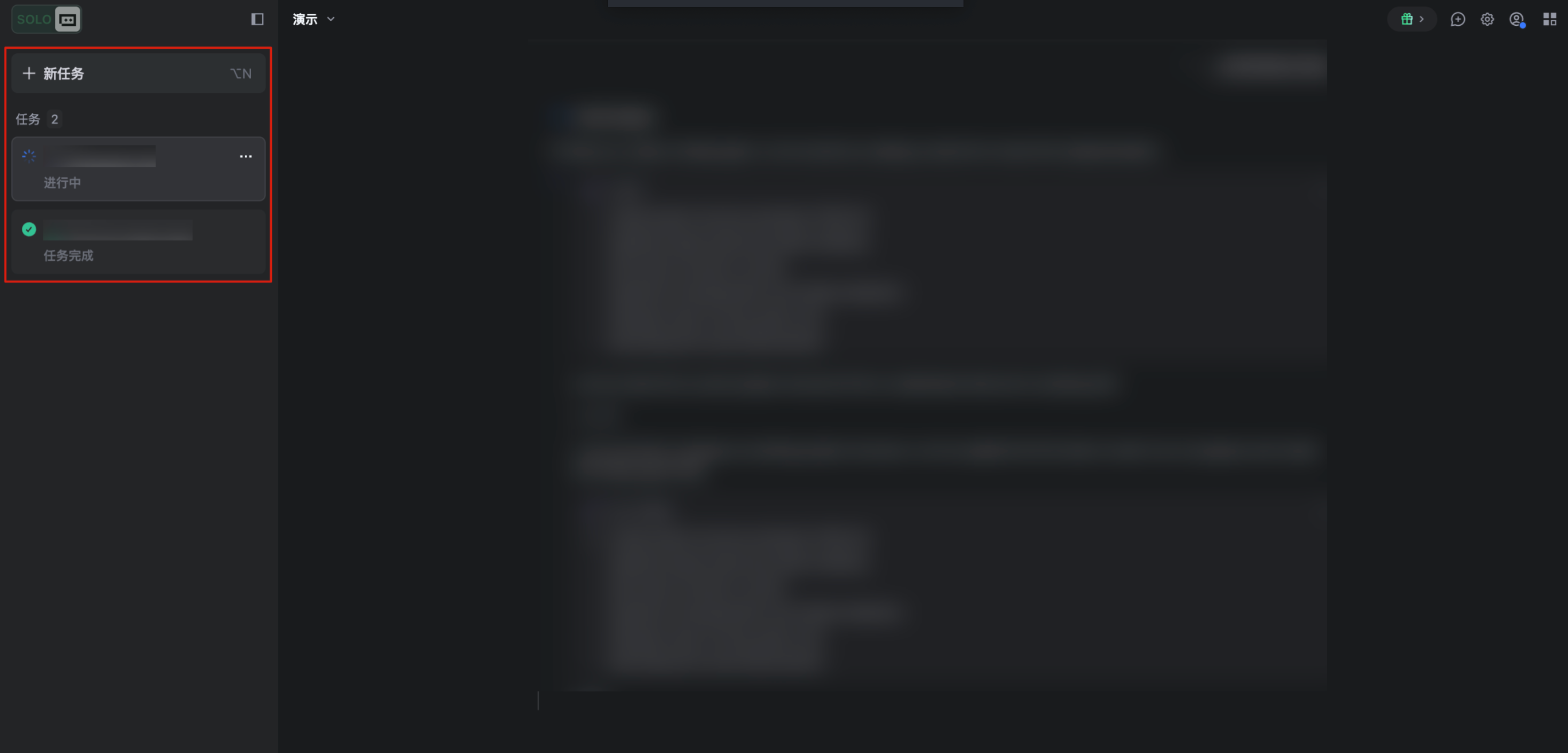 任务面板位于 SOLO 界面的左侧,展示当前项目中的所有任务及每个任务的状态。