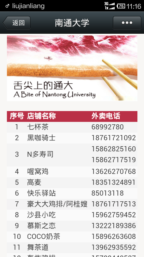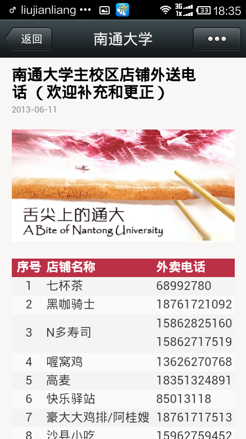 下图是作者在南通大学微信公众账号ntuweixin中使用表格的一个案例,大家关注账号后回复“TDWM”可查看效果。