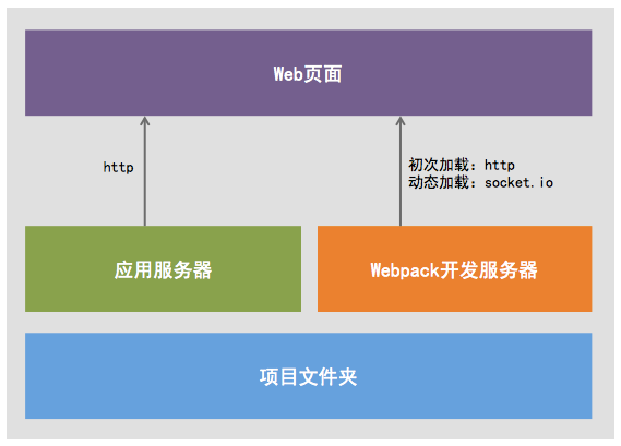 这就告诉当前页面应该去另外一个服务器获得脚本资源文件,在之前我们已经在配置文件中指定了开发服务器的地址,因此打包后的文件也知道应该通过哪个地址去建立Socket IO来动态加载模块。整个资源架构如下图所示: